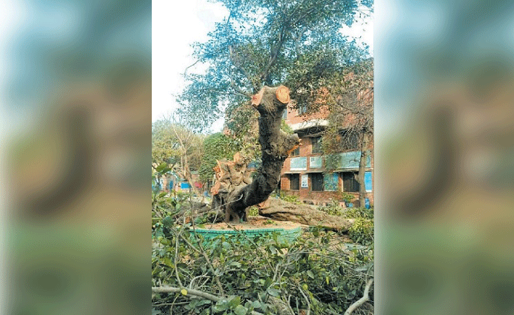 The area people allege that the principal of the government-run college quietly decided to sell the tree on a holiday. They say as they learnt about the ‘tree-chopping spree’ they protested and managed to save one branch of Allah Rakha.