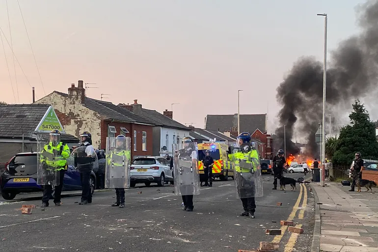 Violent clashes erupted in the southeastern coastal town of New Southport, near Liverpool, England, following a tragic attack at a local school that left three students dead.