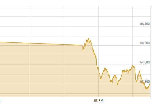 The Pakistan Stock Exchange (PSX) encountered persistent bearish sentiment on Friday as shares extended losses, resulting in a substantial dip of nearly 500 points. The KSE-100 index, according to the PSX website, concluded the day at 63,813.06 points, marking a decline of 484.94 points or 0.75% compared to the previous close at 64,298.00.