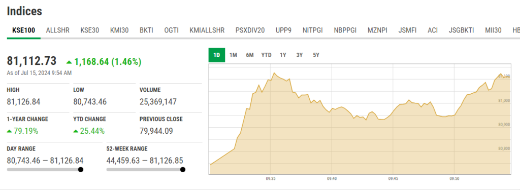 KARACHI: The Pakistan Stock Exchange (PSX) kicked off the week with a robust uptrend, propelled by the signing of a new International Monetary Fund (IMF) deal, which saw the benchmark KSE-100 index surpass the significant 81,000 mark.