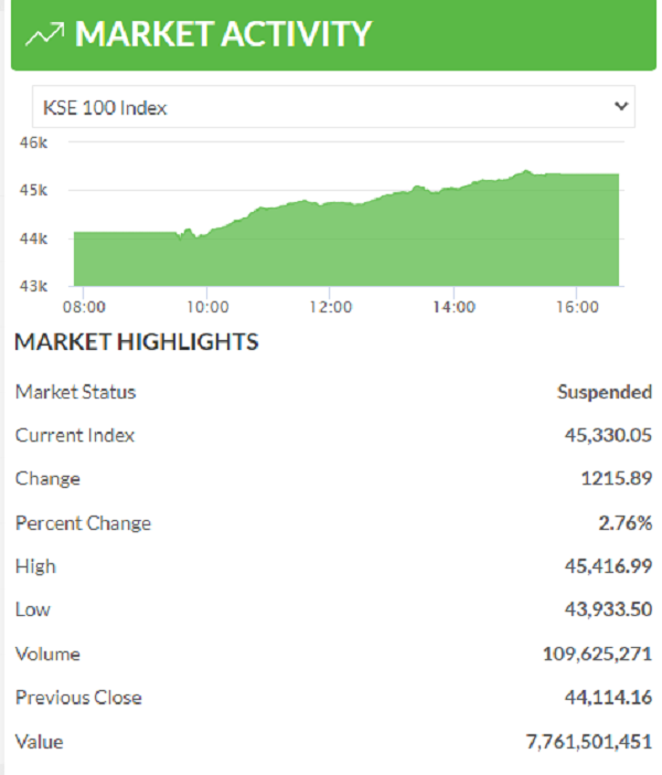 The PSX-100 index surged to 45,416 points on Monday (Nov 29), ignoring risks of Omicron.