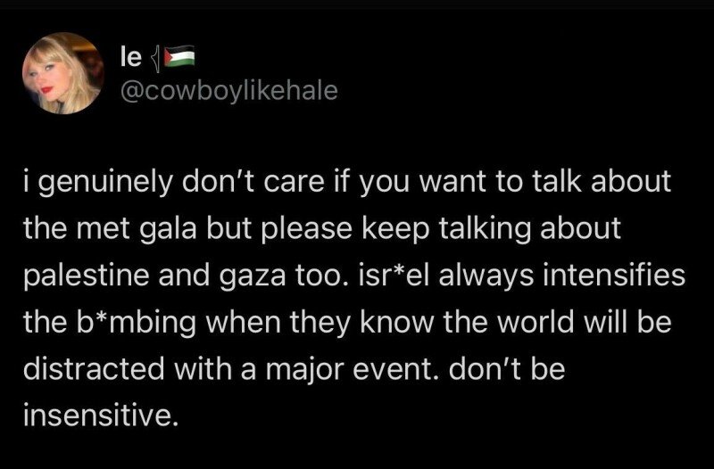 While some advocated for simultaneous awareness of both Gaza and the Met Gala, pro-Palestine protesters rallied near the event, drawing attention to the ongoing war in Gaza and leading to several arrests.