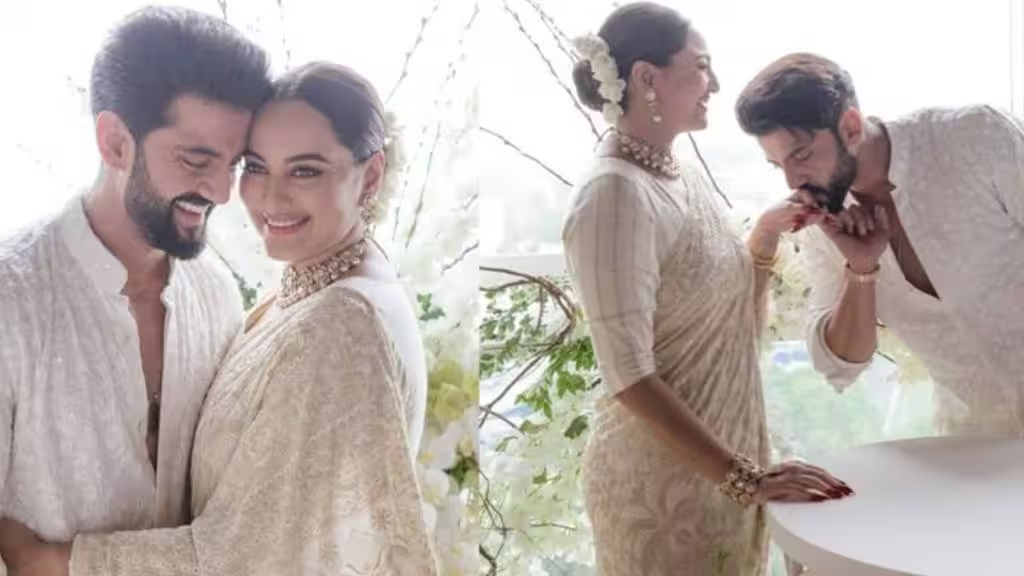 Sonakshi donned a cream saree for the occasion, while Zaheer opted for a traditional white kurta, complementing each other’s attire perfectly. The couple’s coordinated outfits added a serene and elegant touch to the ceremony.