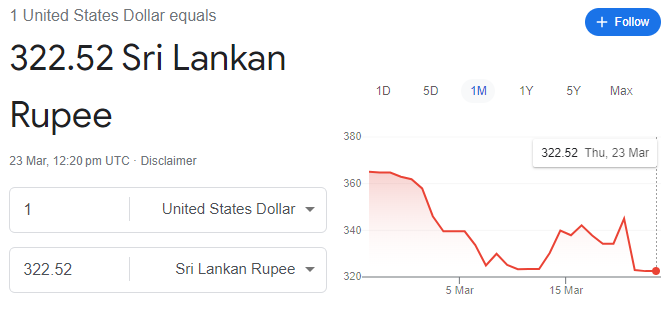 However, the exchange rate widened to a record high of 365 rupees in February this year. Nonetheless, it started descending when the Sri Lankan government started negotiations with the IMF, seeking a bailout package.