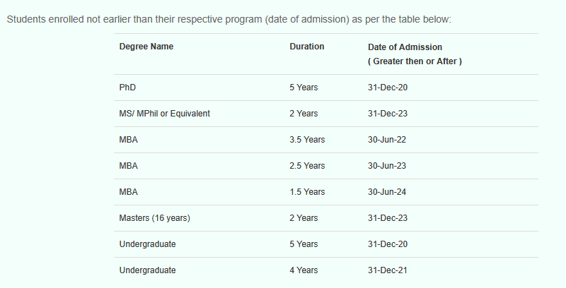 - Those enrolled in PhD, MS, MPhil, or equivalent 18-year programs (excluding weekend-only programs).