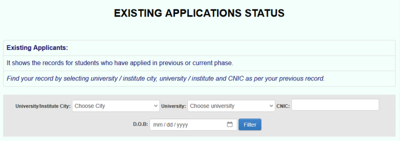 - Select your respective university and provide your CNIC and date of birth to access and update your record.