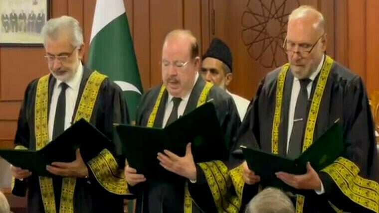 Chief Justice Qazi Faez Isa administered the oath of office to both Justice Masood and Justice Miankhel, signifying their entry into the judiciary’s temporary ranks.