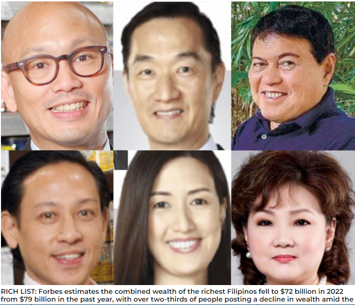According to the Forbes magazine, 20 richest Filipinos hold more than $72 billion worth assets and bank balances by second quarter of 2022.