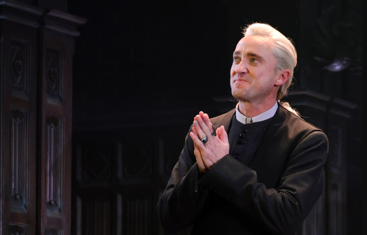Amid loud applause and cheers, Tom Felton made his first entrance on Broadway as Draco Malfoy. His opening line, “I need a favor,” was delivered to a captivated audience. The moment was widely shared on social media, with captions referencing Draco’s early line in Harry Potter and the Sorcerer’s Stone: “It’s true then, what they’re saying on the train.”
