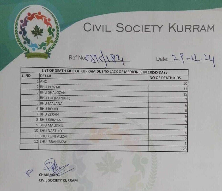 According to Turi, the district headquarters hospital in Kurram has reported 37 child deaths since the conflict began. Including figures from surrounding hospitals, the total reaches 128 children who have died over the past 85 days due to inadequate medical supplies. A local civil society group corroborated this figure in a list shared with Dawn.com.