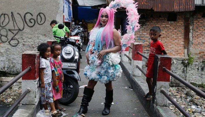 In the heart of Jakarta’s slums, a vibrant transgender community is wielding fashion as a potent tool, drawing attention to their lives and the pressing climate change in their densely packed, polluted city.