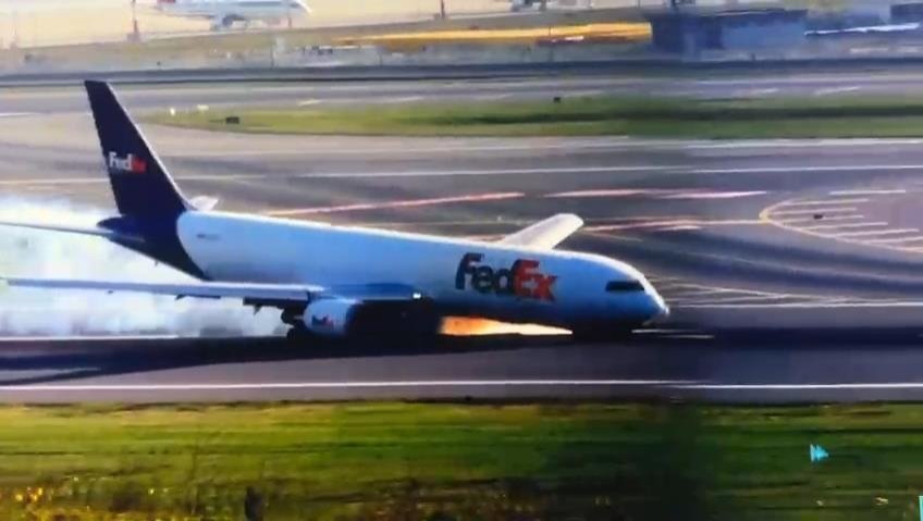 ISTANBUL: A video circulating on social media shows the Boeing 767, belonging to FedEx Express, using its back landing gear and then lowering its nose with the front portion of the fuselage.