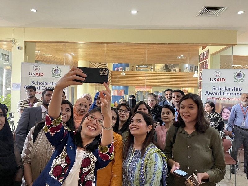 Mission Director Kate Somvongsiri joined Higher Education Commission Executive Director Aayesha Ikram to award scholarships to 112 Pakistani high-achieving undergraduate students.
