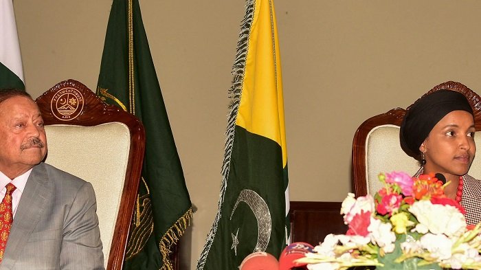 Speaking to media along with AJK President Sultan Mahmood, Ilhan Omar said, “On the question of Kashmir, we held a committee hearing on the foreign affairs committee to look at the reports of human rights violations and to talk about the bigger issue with the Narendra Modi administration’s anti-Muslim rhetoric and how that’s leading to human rights violations as well.”