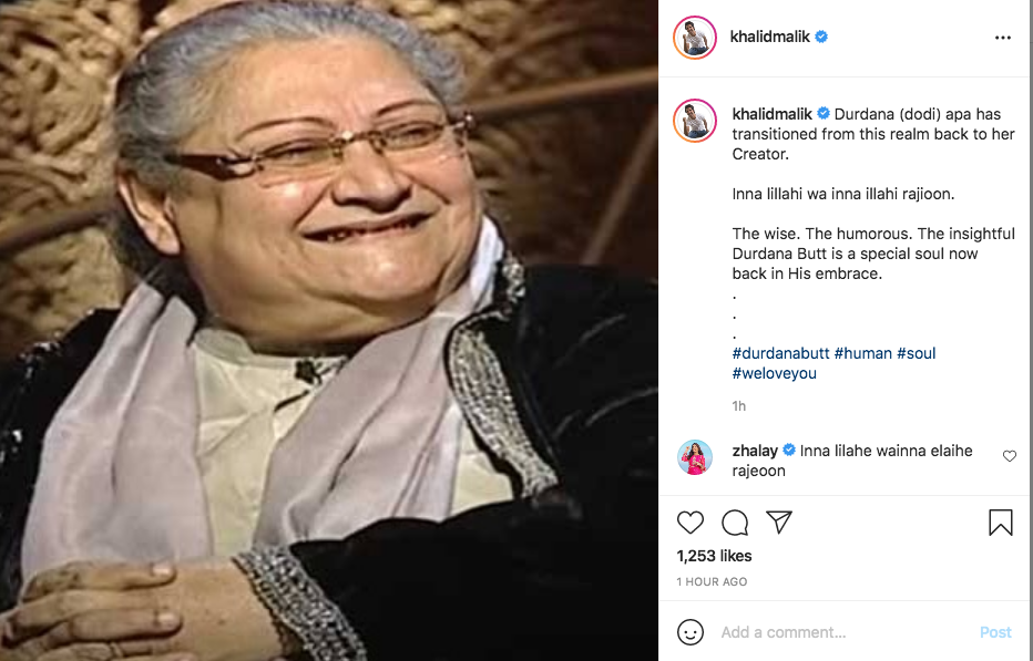 News of her tragic passing was confirmed by actor/RJ Khalid Malik who also shared the news on Instagram.