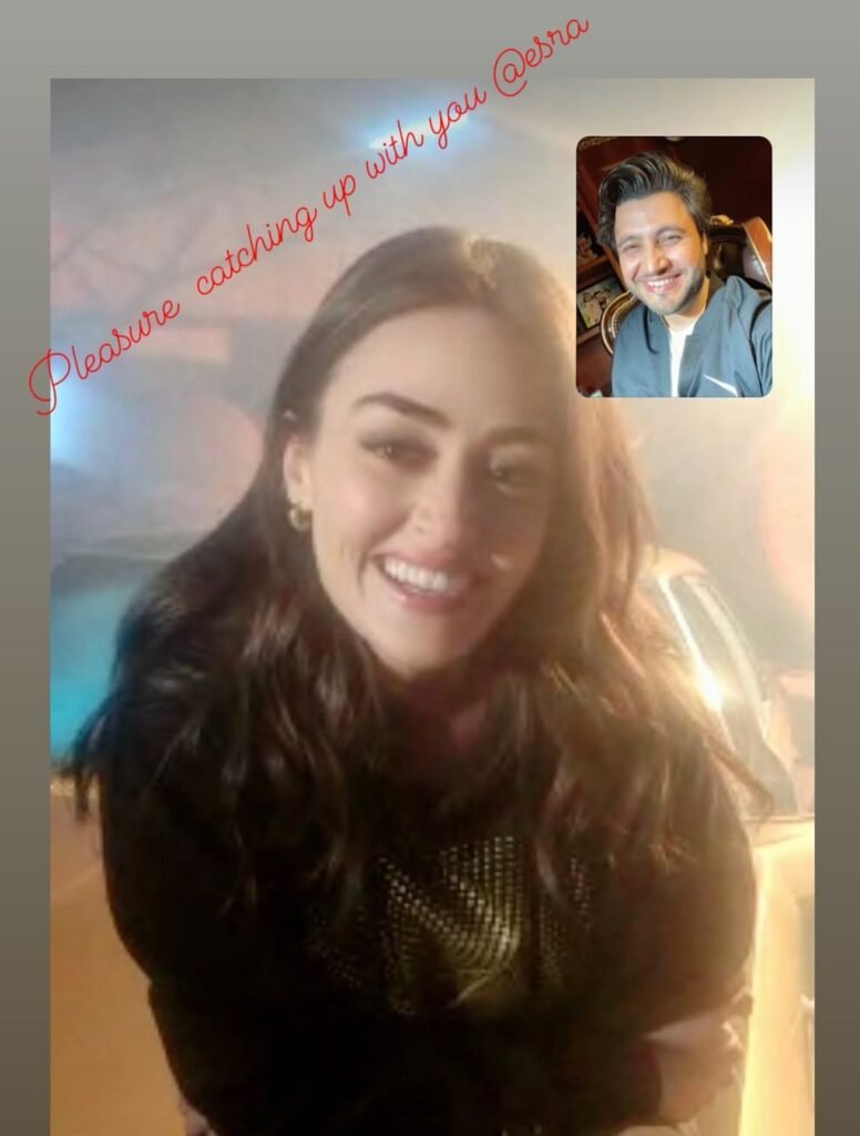 Javed Afridi shared a screenshot of a video call and wrote, “Pleasure catching up with you, Esra!”