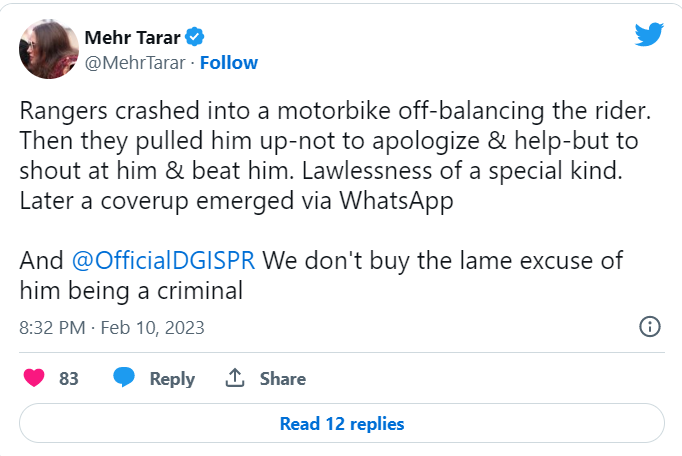 According to early reports, the Rangers are pursuing a snatcher, according to PTI politician Shahbaz Gill in a tweet.