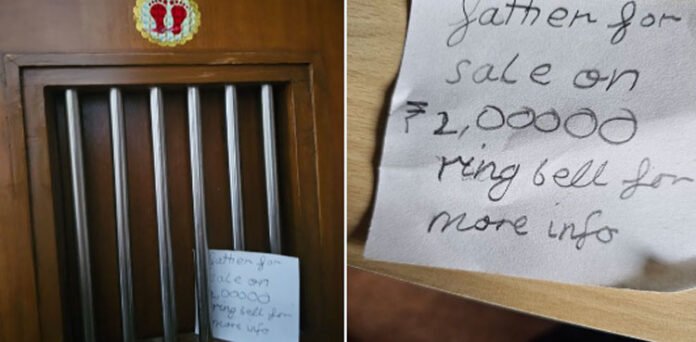 Shared by a user named @Malavtweets, the photo showcased a handwritten poster that humorously read, “father for sale on ₹ 2,00000 ring bell for more info.”