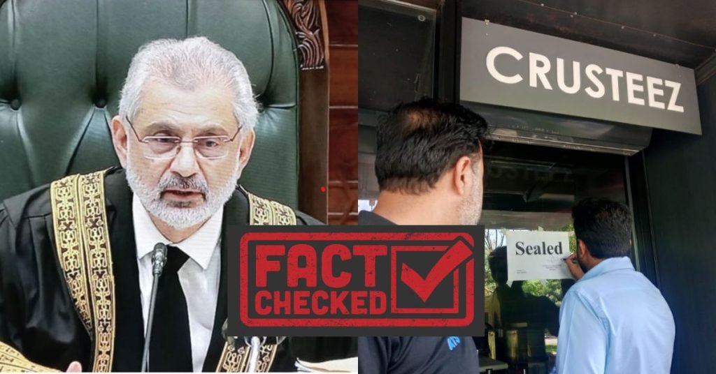 A video circulating on Pakistani social media falsely claims that the Crusteez donut shop was sealed following an incident involving the chief justice. This allegation has been thoroughly debunked.