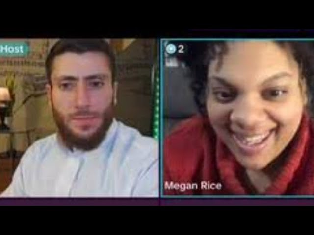 In this video, Megan Rice embraces Islam by repeating “Shahadah”. A man is guiding her to say “Shahadah” to become a true Muslim. She gets emotional after embracing Islam.