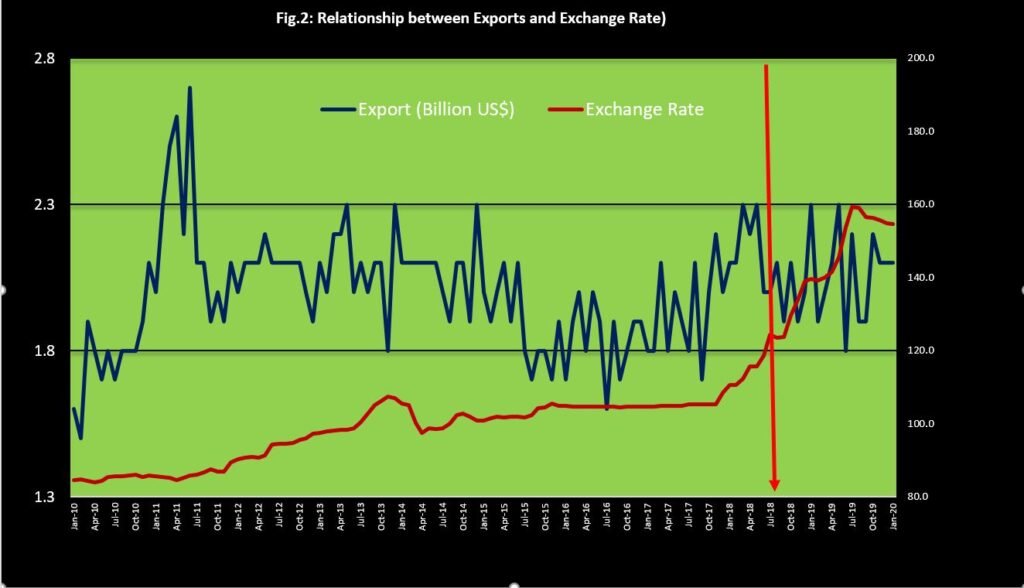 It is clear that our exports have moved in a narrow monthly range of $1.7 billion to $2.3 billion, irrespective of the exchange rate, whether it is Rs. 60 per dollar or Rs. 160 per dollar. I have been arguing time and again that by adjusting the exchange rate Pakistan cannot increase its exports. Devaluation raises the input cost of export-oriented industries and makes them non-competitive. According to Dr. Ishrat Hussain, close to 60% of the inputs to export-oriented industries are imported, hence devaluation raises their costs and makes them non-competitive. While devaluation failed to increase exports, it certainly added Rs. 4666 billion to public debt without borrowing a single dollar from July 2018 to March 2020.