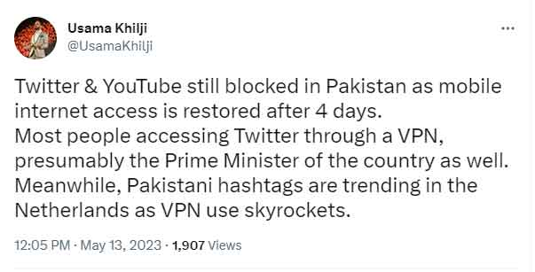 According to Khilji, the majority of users, including the nation’s prime minister, access Twitter through a VPN.