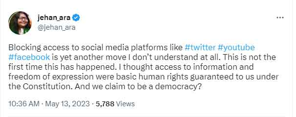 “This is not the first time this has happened. I thought access to information and freedom of expression were basic human rights guaranteed to us under the Constitution. And we claim to be a democracy?” she tweeted.