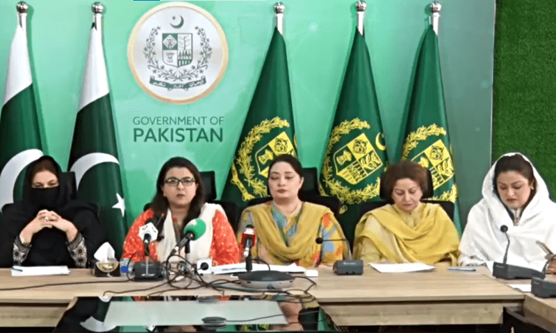 The press conference was led by Minister of State for IT Shaza Fatima Khawaja, along with prominent figures such as Romina Khurshid Alam, the Prime Minister’s aide on climate change, and MNAs Shaista Pervaiz Malik and Syeda Nosheen Iftikhar.