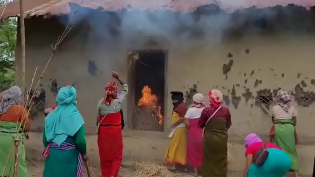 A group of enraged women set ablaze the residence of an Indian man accused of orchestrating the public humiliation of two women in a northeastern state. A widely circulated video depicted two women, purportedly from the Kuki tribal group, walking naked in a street while being harassed by a mob allegedly from the Meitei community.