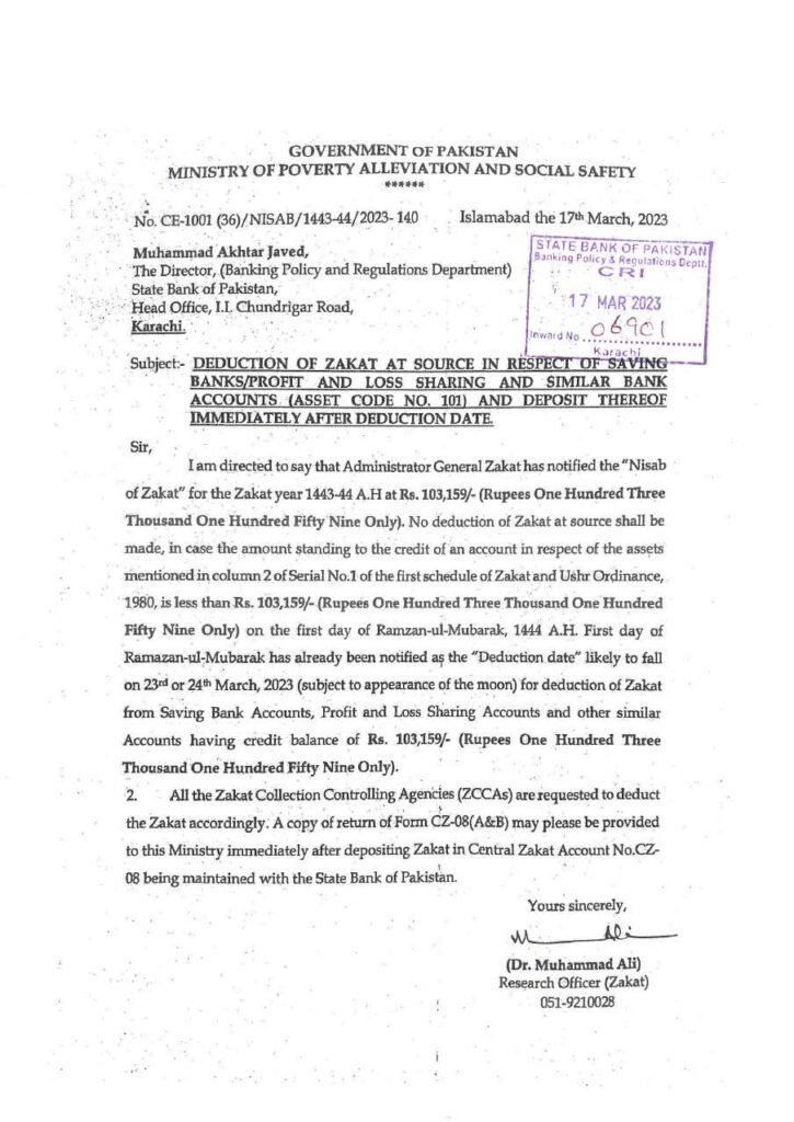 According to the Ministry, “All the Zakat Collection Controlling Agencies (ZCCAs) are requested to deduct the Zakat accordingly.”