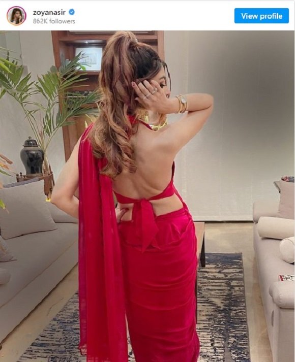 Recently, Zoya Nasir has been criticised for sharing a picture on her Instagram, wearing a red saree with a backless blouse.